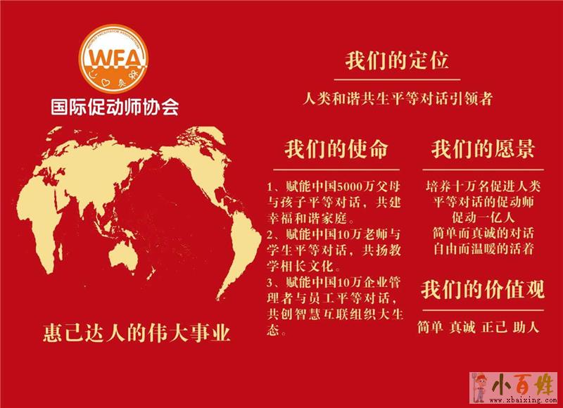 业绩倍增教育科技的管理机构,是WFA国际促动师协会,秉持简单真诚正己助人的价值观,WFA希望将促动技术传播给更多有需要的人,促进人与人之间能简单真诚的对话,促进家庭教育,学校教育,职业教育的变革。
