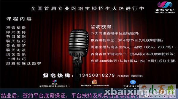 3.网络主播课程结业后,学员做专业现场商业演出主持人一样专业。例如:晚会、年会、发布会、车展、等等 每场出场费最少2000.00/场(工作时间一个半小时)