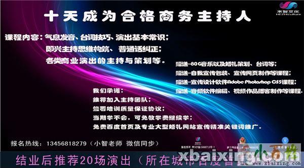 培训对象:热爱商业演出或综艺娱乐主持及大型企业内部主持人专业,素质,能力等需要提高的人士。