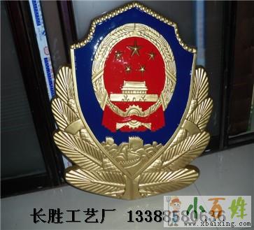 温州长胜工艺厂秉承精工制作的一贯理念,专业从事国家机关、政府部门大型悬挂用徽企业标志及导向标识的生产制作小.百.姓.网。具有多种材质可供选择x.b.a.i.x.i.n.g.c.o.m。贴金,铝铸金粉烤漆,钛合金,纯铜抛光,压铸工艺,锌合金等!专业生产制作,警徽,新税徽,武警徽,八一徽,工商徽,胸章,肩章,等徽章工艺品小.百.姓.网。本厂不断创新改进从铸铁,铸铝的普通工艺改进为304#不锈钢冲压,高温镀钛金,改掉以往铸铝易氧化,易变色的缺点304#不锈钢镀钛特点色泽鲜艳,该产品具有重量轻、不生锈、不氧化、寿命长达12年以上,不会变色、褪色、掉色欢迎www.xbaixing.com。等特点!不锈钢材质制作的国徽警徽等徽标产品,因其本身不锈钢的高抗腐蚀性和表面采用钛工艺,其它颜色局部采用进口汽车烤漆,不褪色JckL。受到沿海各城市政府单位的青睐gPS。