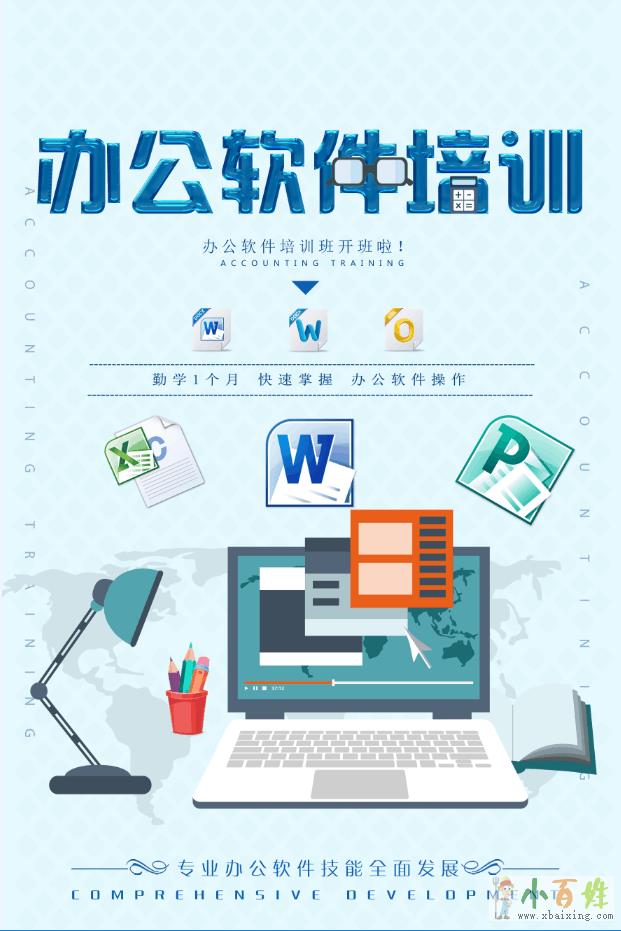 2、Word:学习文字的录入、各类文书订单资料的高级排版及编排技巧、实用型与复杂型表格的设计与制作、工厂流程图与工资条制作、平面绘图、图文混排以及目录的设计与制作等内容来自www.xbaixing.com。