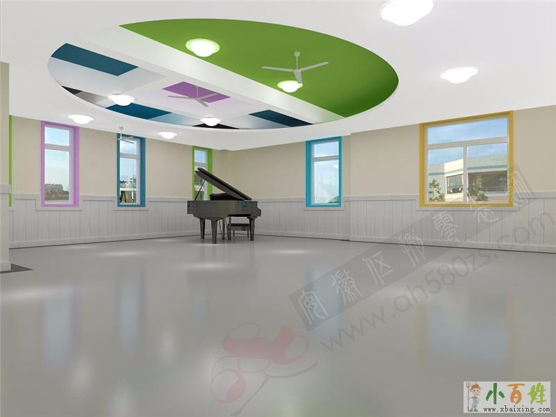 舞蹈室宽敞明亮,多个长条形的窗户尽可能地引入了自然光线,暖暖的阳光下小朋友练习着舞步,一定是非常开心的时刻小.百.姓.网。圆形的吊顶装饰,活泼有动态感,更符合小朋友的喜好。