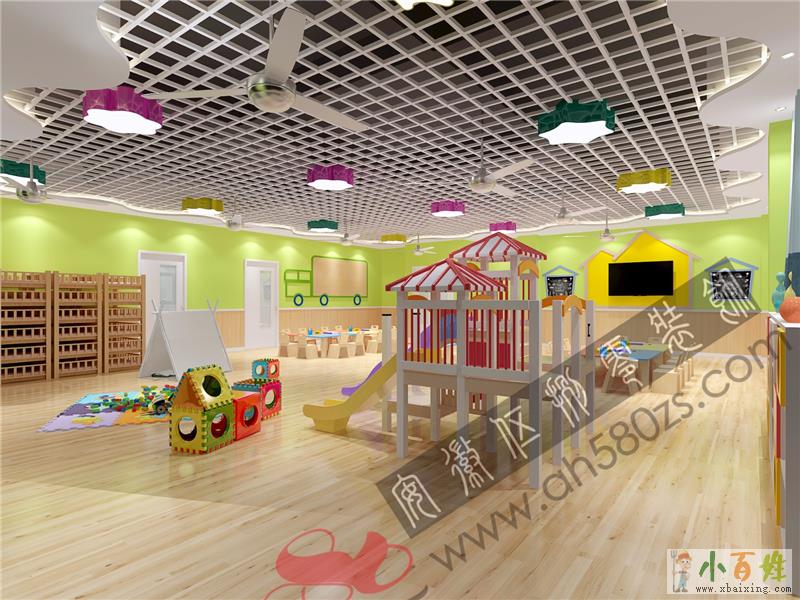 我们公司装修的这个项目中,整体采用黄绿色的色调,清新愉悦。吊顶设计是心血所在,采用部分镂空设计,极大的丰富了视觉感受,强烈的线条冲突加上可爱的吊灯,也有助于开发小朋友的空间想象来自www.xbaixing.com。采用防滑地板,不担心打闹摔倒问题。