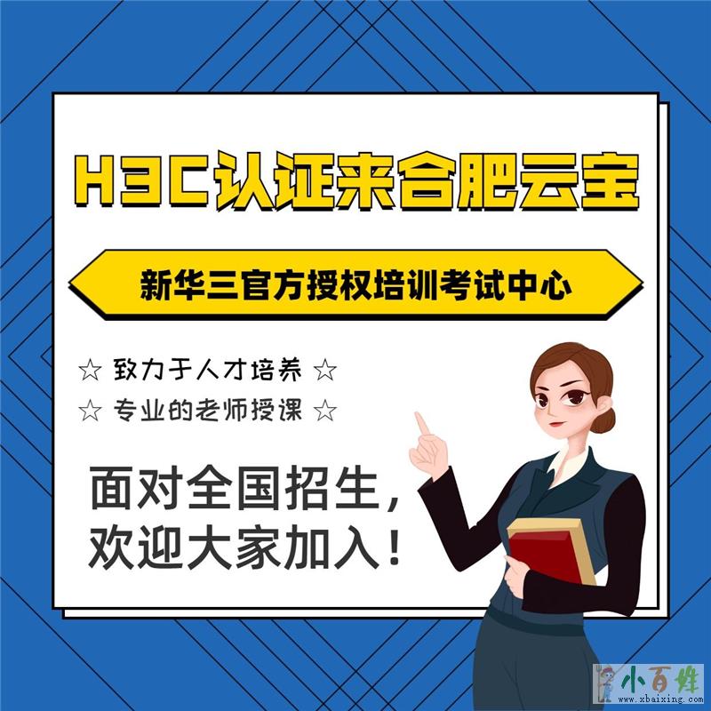 学习新华三H3CNE,H3CSE,H3CIE认证网络工程师可到合肥云宝,合肥云宝信息技术有限公司是新华三官 方 授 权的培训机构、考试中心,有面授+远程两种授课方式,齐全的实验设备,能够助您早日成为行内精英!