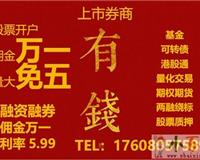 1.A股佣金万1.2,量大万1,可以取消五元限制!2.基金万0.6,量大万0.5,可以取消五元限制!3.融资融券佣金万1.2,量大万1,融资利率5.99!还可以两融绕标!4.债券万0.5,国债逆回购三折!5.期权2元一张,量大1.7元!6.港股通万1.5,同时可以开通纯港股!7.支持量化交易!8.科创板开通 任何投资的问题都可以加我,欢迎咨询!..